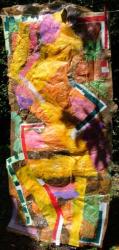Corps reconstruits: papers...wallpapers, repainted, found. Bits of history which resonate. Traces of fragmented materials, Tears open new perspectives. Everything becomes possible.